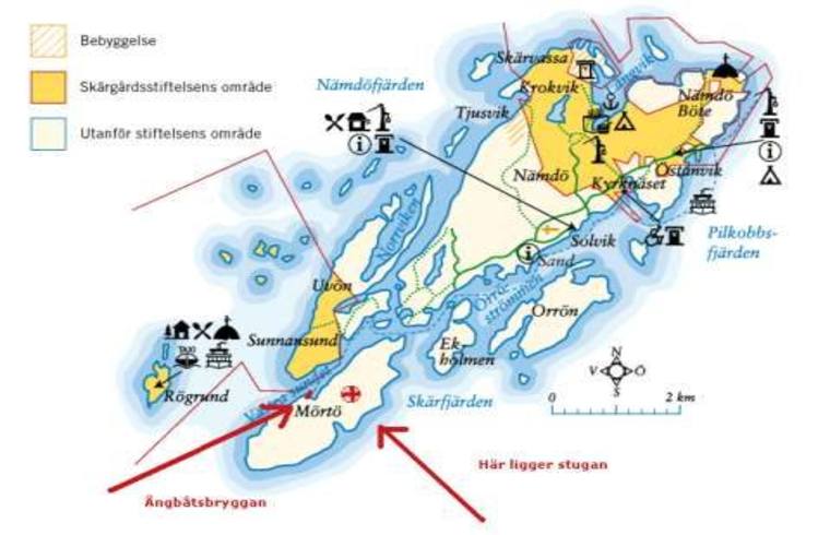 kvm. Ön heter Mörtö och ligger söder om den större ön Nämdö.
