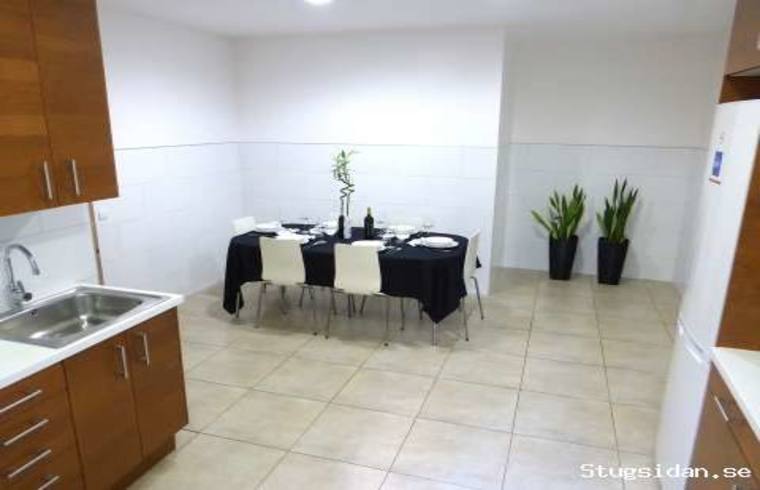 utensils. The kitchen table is set for 6 people, but combining the 3 room