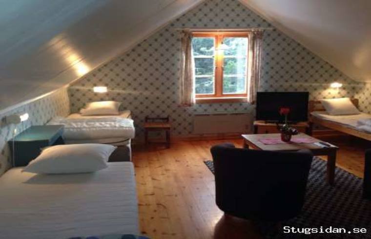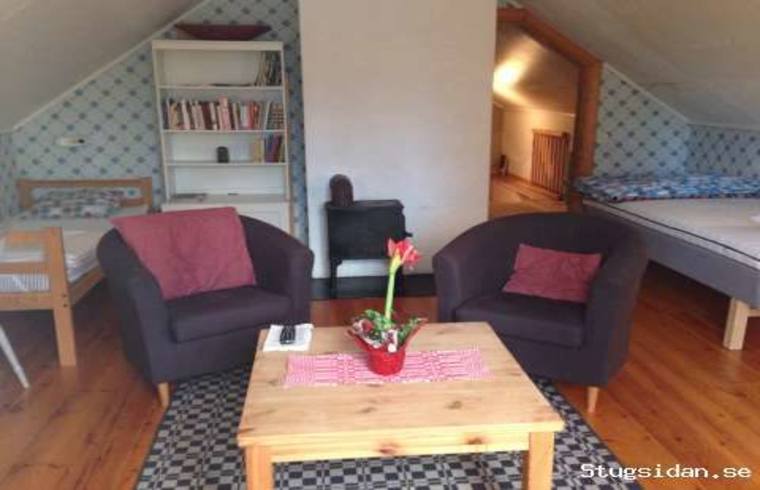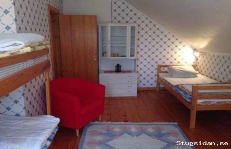 Övervåning: 2 sovrum med 4 bäddar i varje. I det större kamin och TV+fåtöljer.