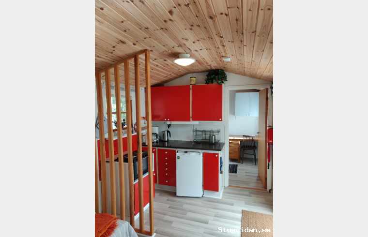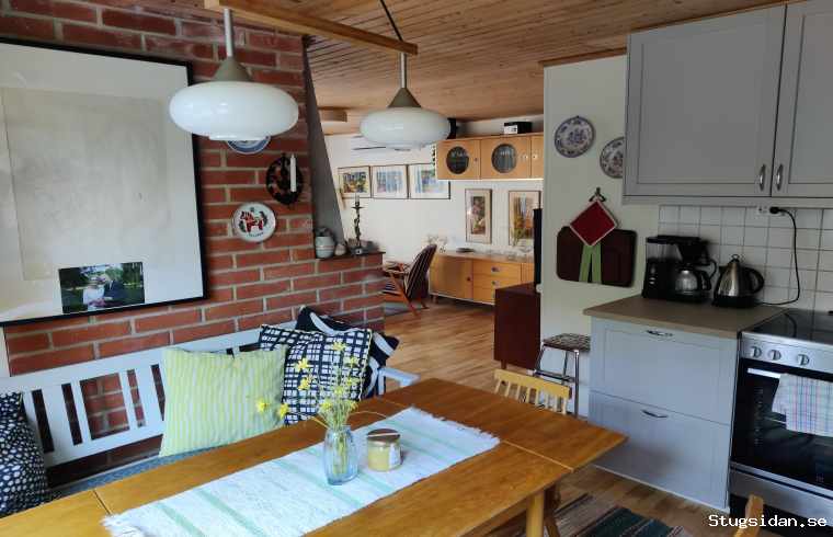 The guest cottage, 19 sqm, has four beds (one room with double sofa bed
