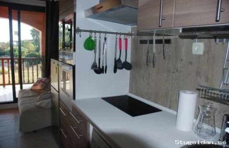 för två personer på sovloftet. Köket är utrustat med kylskåp, 2 kokplattor,