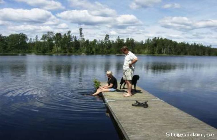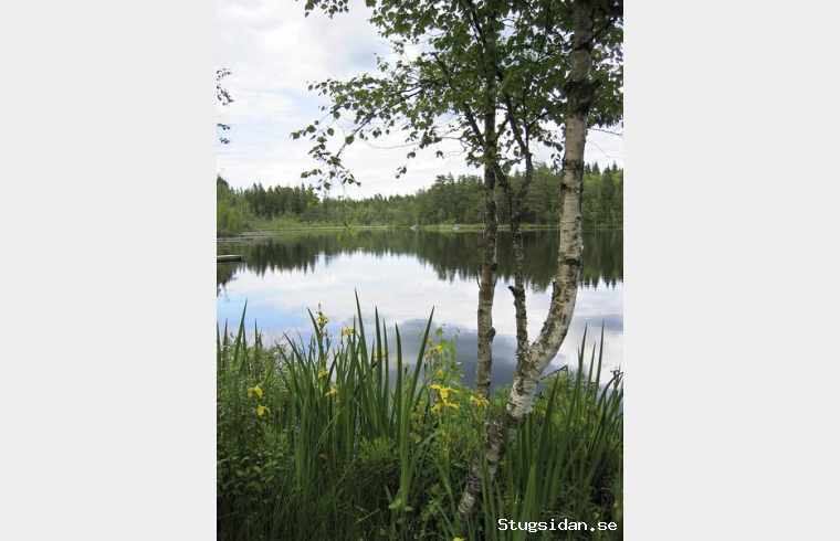 En röd liten stuga med närhet till småländska skogar och sjöar. Bl a sjö med