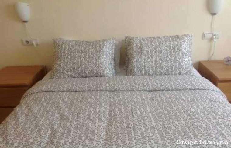dubbelsäng.I vardagsrummet finns en ny bäddsoffa och nya bäddmadrasser.