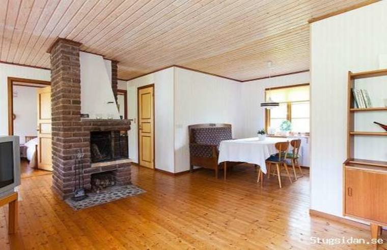 två sovrum, en storstuga med en mysig öppen spis, ett trevligt kök och ett