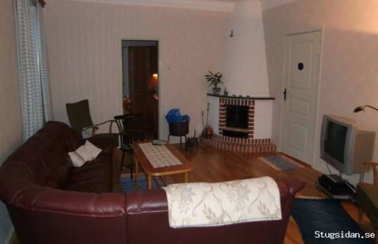 stort allrum med öppen spis o tv o dvd, ett matrum med utgång till terrass