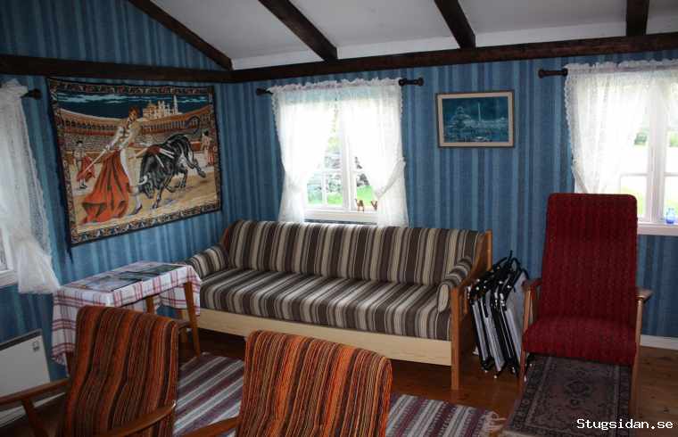 bäddsoffa med 2 bäddar samt soffgrupp. Radio och TV finns.