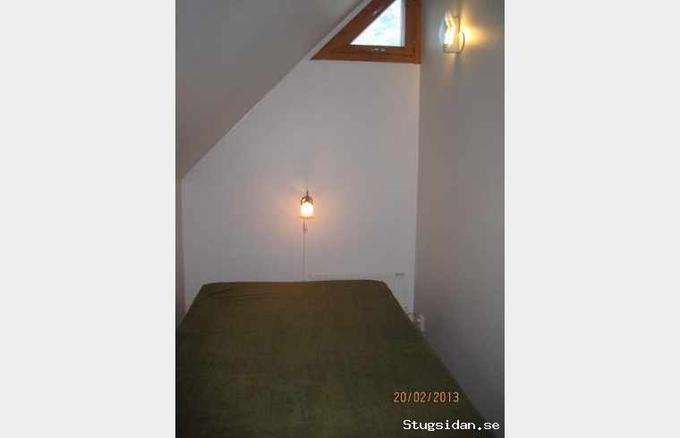 I stugan en trappa upp finns 2 sovrum, ett litet vardagsrum och terrass. Det