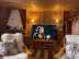 fåtöljer, öppen spis och 65'' Smart-TV. (Du använder