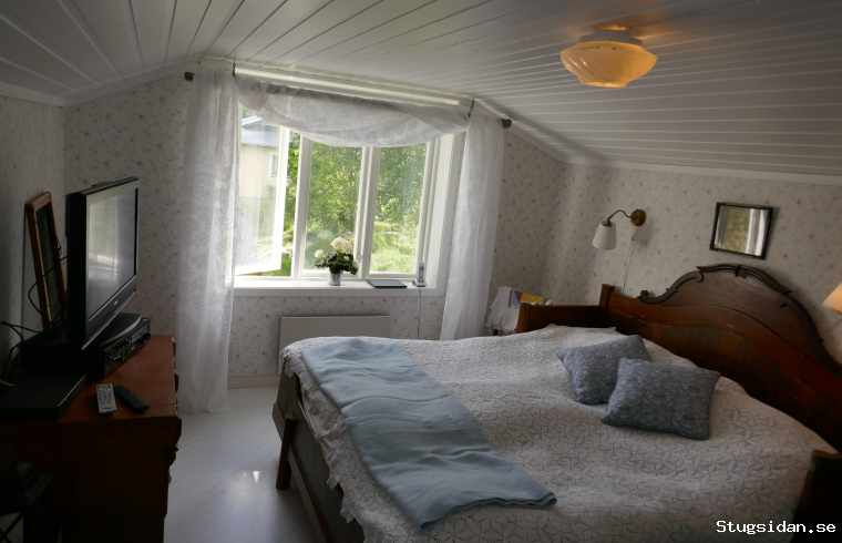 1. Ett stort rum på övervåningen med dubbelsäng och ett