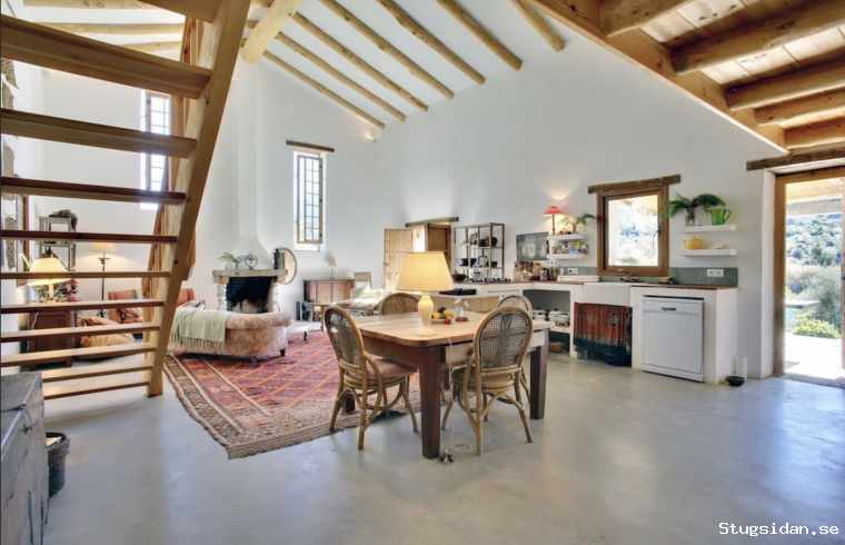 open-plan living space with big open fire. 3 bedrooms, of which 2 en