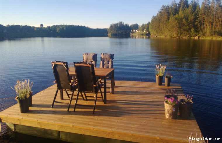 Stor uteplats på 50 kvm med murad grill med sjön inpå. Samt nybyggd terrass på ca 45 kvm med spabad för upp till sju personer samt utedusch. Till Borås tar det ca 20 min som är en trevlig stad där man kan handla m.m eller besöka Borås Zoo som är väldigt populärt.