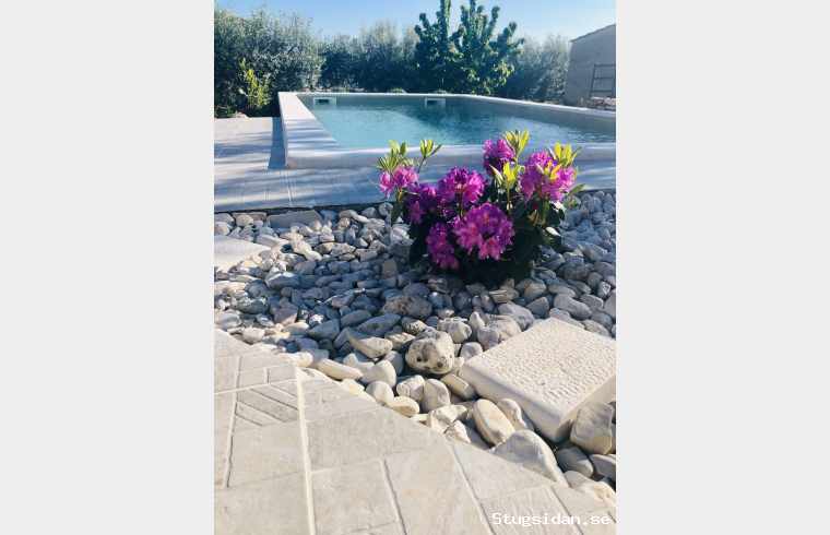 Holiday home is surrounded with Olive trees and Mediterranean plants, like rosemary.