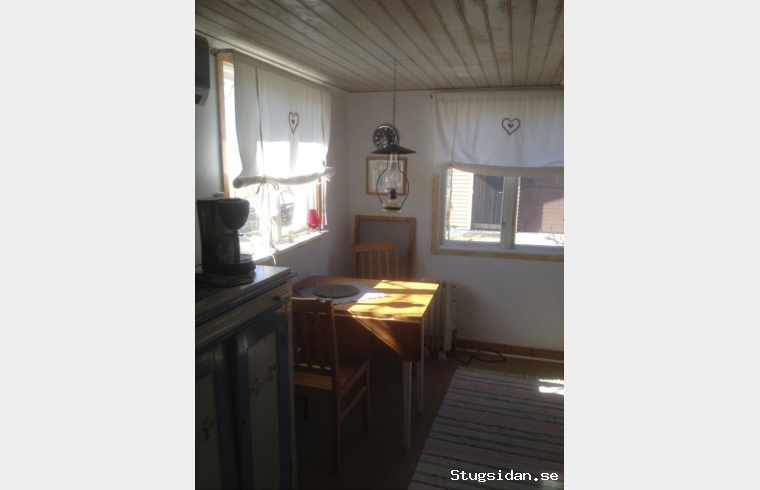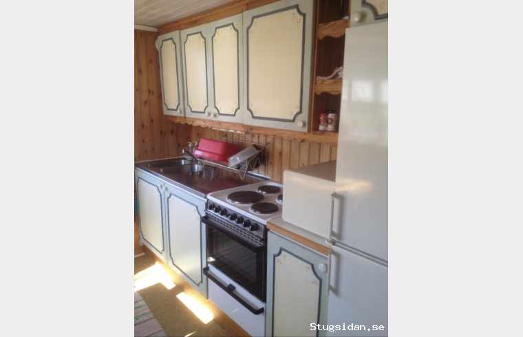 Stugan har fullt utrustat kök och sittplats. Två bäddar och WC.