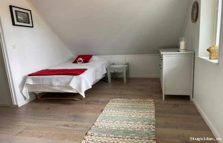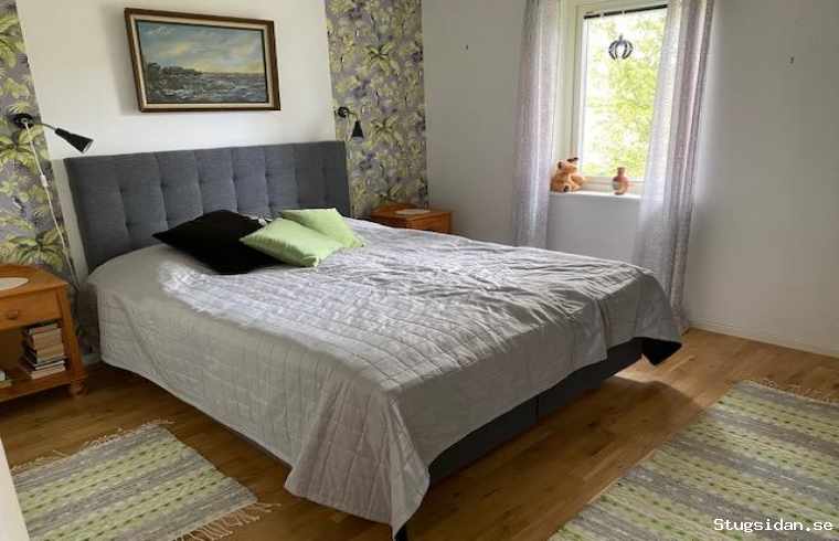 På nedre plan finns ett sovrum med dubbelsäng, ett litet sovrum med en säng samt WC och dusch.