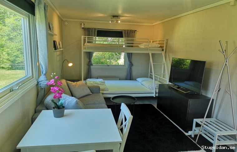 kök/vardagsrum/sovplats. Våningsäng 140 cm och 80 cm.