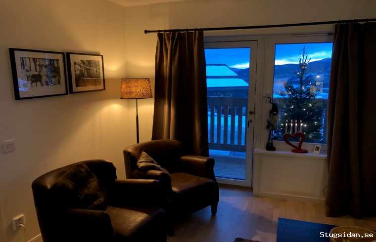 vardagsrum i öppen planlösning. Balkong i österläge med vacker utsikt över Åreskutan, Renfjället och