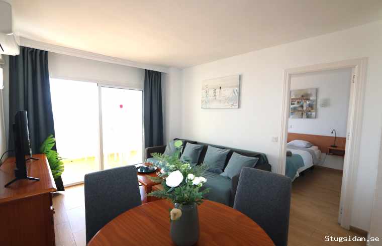 The spacious living area features a sofa bed, allowing the apartment to comfortably accommodate up to