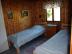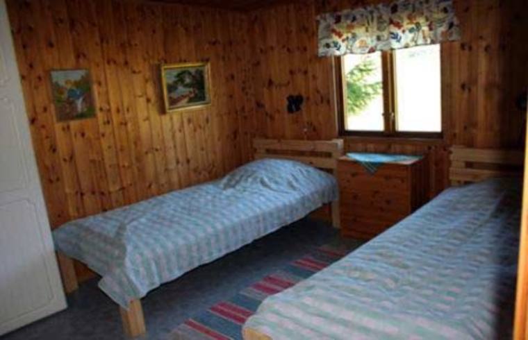 Stugan har ett sovrum med dubbelsäng och ett rum med två bäddar. Till de minsta barnen finns det