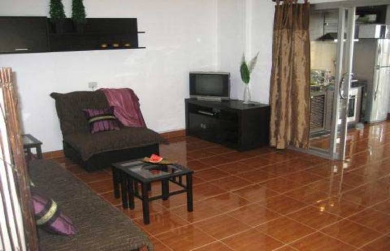 dubbelsäng. I vardagsrummet (med TV+DVD) finns en bäddsoffa samt en