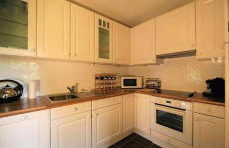 Nytt og fullt utstyrt moderne kjøkken. Komfyr og varmluftsovn, kjøleskap