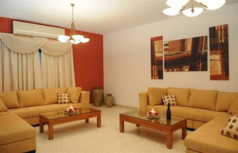 The lower floor of the villa consists of three bedrooms, two bathrooms (one