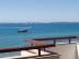 The apartment is on the fourth floor, overlooking the beach and sea with a