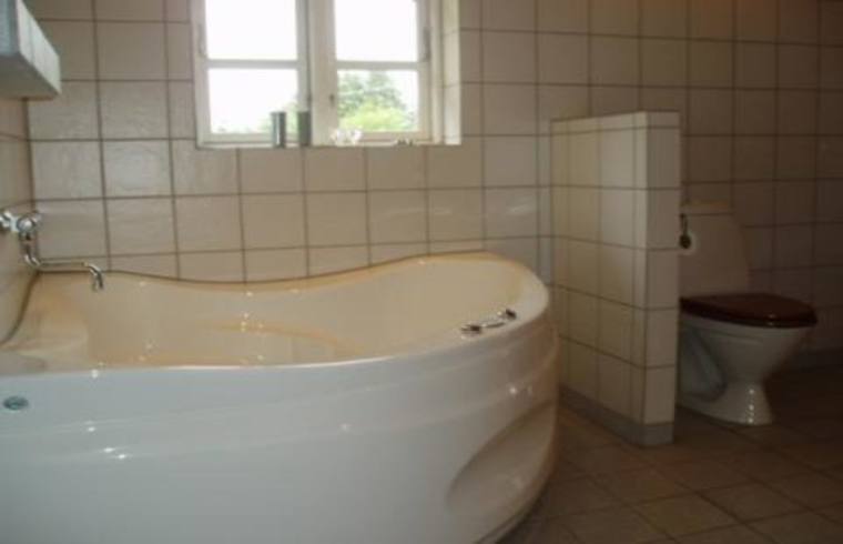 toilet er med wc og bruser. Stort køkkenalrum med tilhørende stue, hvor