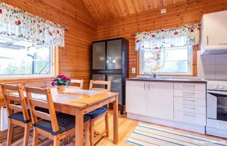 Stugan är avsedd för 4 personer med möjlighet för extrabädd i en bäddsoffa