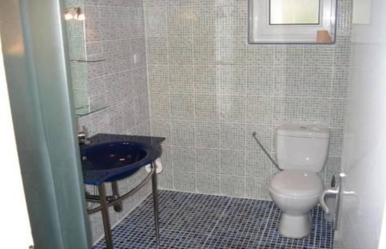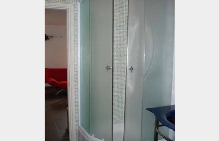 badrum med dusch samt en stor terrass. Plats för 6 personer
