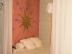 Ett mycket lugnt sovrum med en dubbelsäng och ett badrum med