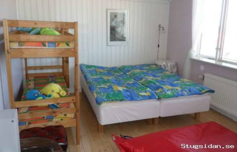 en dubbelsäng med en våningssäng. Sovrum 2 har en dubbelsäng och det finns en