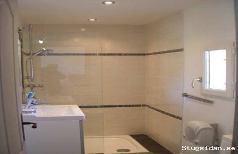 About 40 m2, with two rooms and a kitchen corner. There is a private bathroom