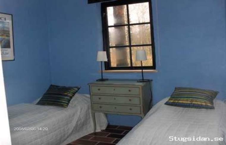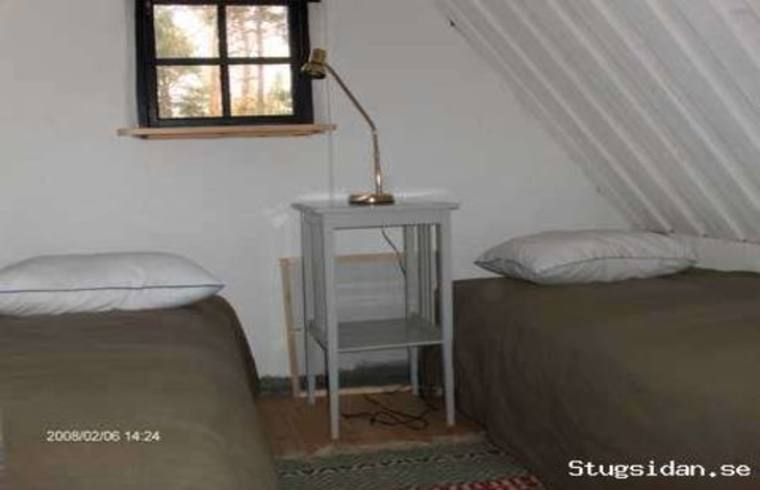 Nybyggd gäststuga nb sovrum med två bäddar,