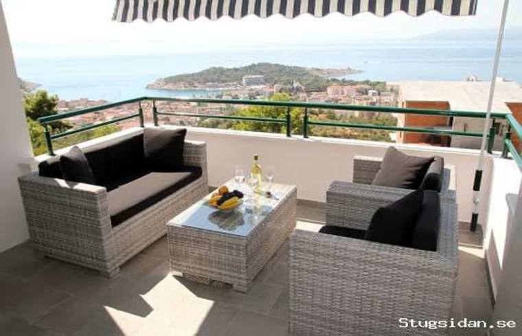 view of the whole town of Makarska as well as the islands Hvar and Brač. The