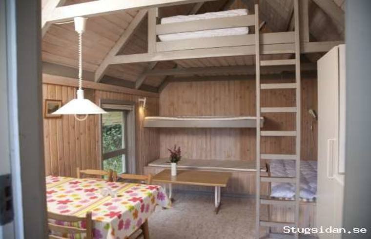 Der er 6 sovepladser: en dobbelt seng, en køjeseng og to madrasser på hemsen.