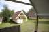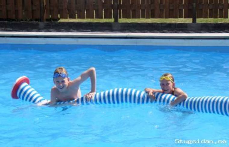 Swimmingpoolen og den lille legeplads er tæt ved hytterne.