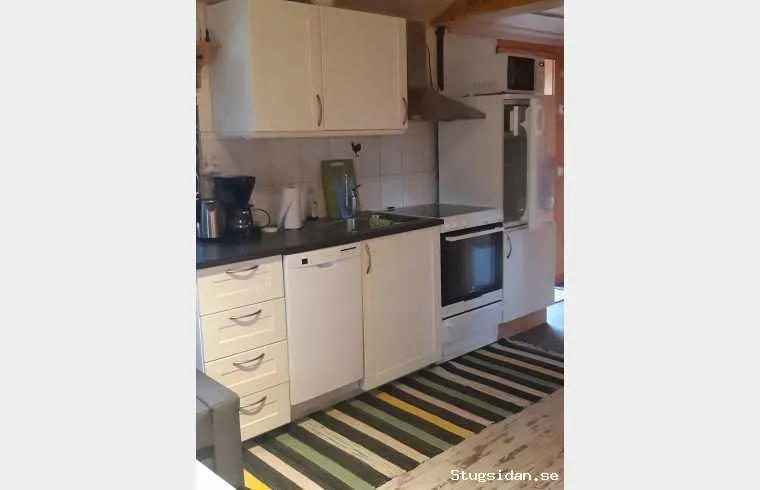 En fin liten stuga med en utdragbar säng och en bäddsoffa . Kök med spis kyl, diskmaskin och micro