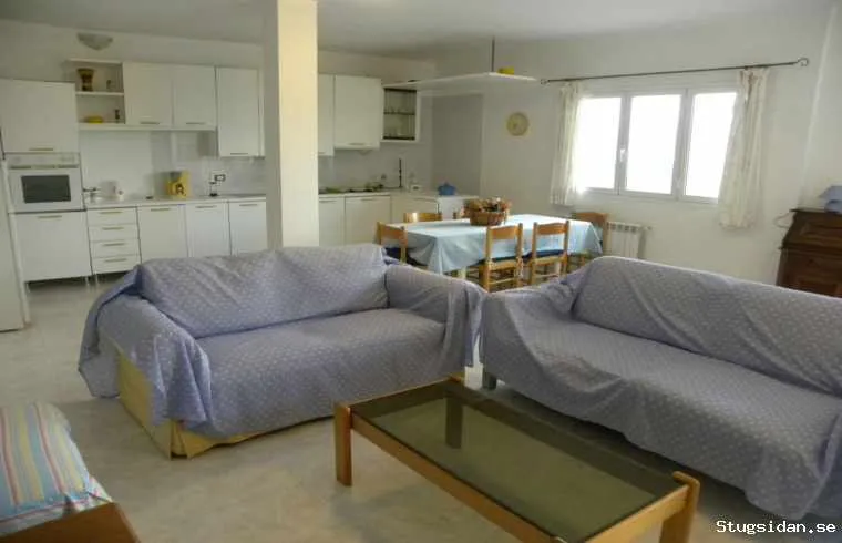 room with sofa, TV and a fully equipped kitchen.Two Bedrooms with 2 double beds and one with bunk