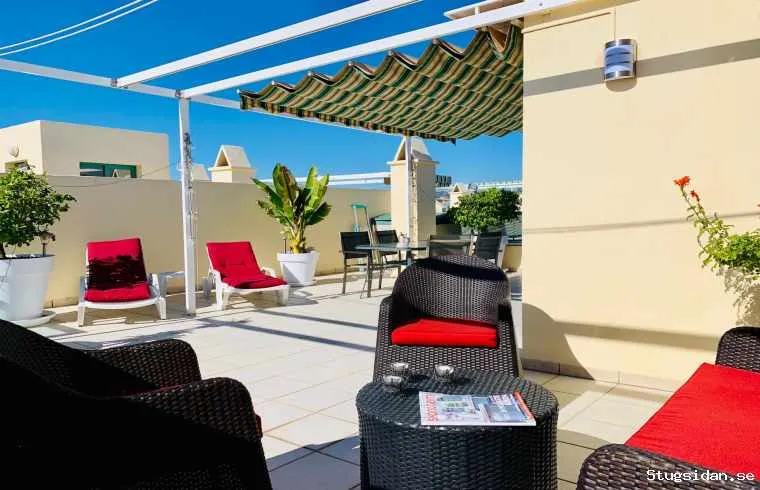 kvm:s takterrass med bl.a. gasgrill. Sol från morgon till kväll. Disk-och