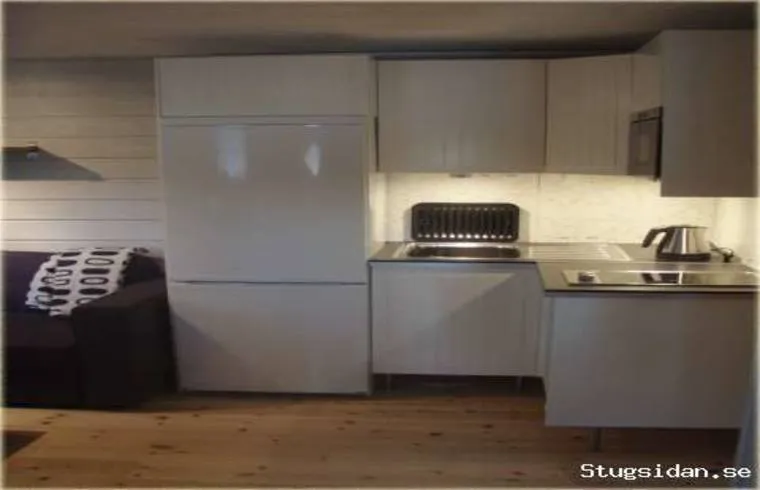 90 cm. The Bed sofa is 140 cm wide if used as bed. The kitchen is equipped with fridge, freezer, micro