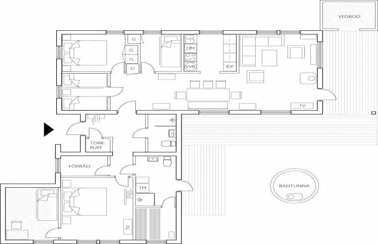 The cabin is 120 m² and well-equipped with 5 bedrooms
