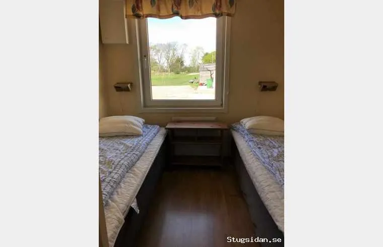 Det finns 3 sovrum med 2 st riktiga resår sängar i varje rum. Det är två