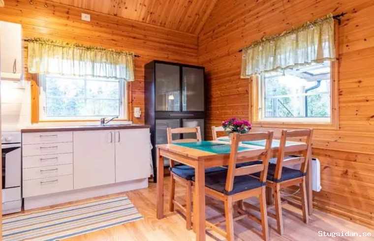 Stugan är avsedd för 4 personer med möjlighet för extrabädd i en bäddsoffa