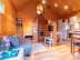 sovloft, kök/vardagsrum och en stor överbyggd altan med utemöbler