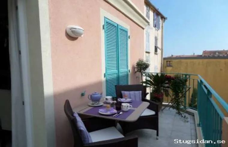 matbord och en bäddsoffa som blir 1,40 bred. På balkongen kan