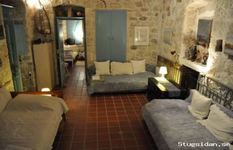 It is a ground floor stone house, with 1 master bedroom and a large living room with 2 sofa beds