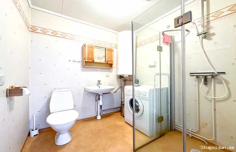 Duschrum med WC, bastu och tvättmaskin.