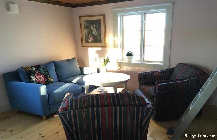 (Apple TV) i vardagsrummet. Stuga för upp till 4 vuxna (sängar 200 cm) + 2 barn/kortare vuxna (sängar 190 cm).