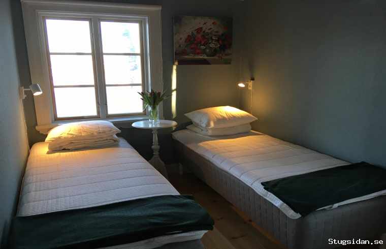 spring + rejäla bäddmadrasser). De två rum som har sängar har mörkläggande rullgardiner i samtliga fönster.