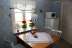 Badezimmer mit Dusche, WC und Waschbecken. Eigener Garten mit Gartenmöbeln und Grill.